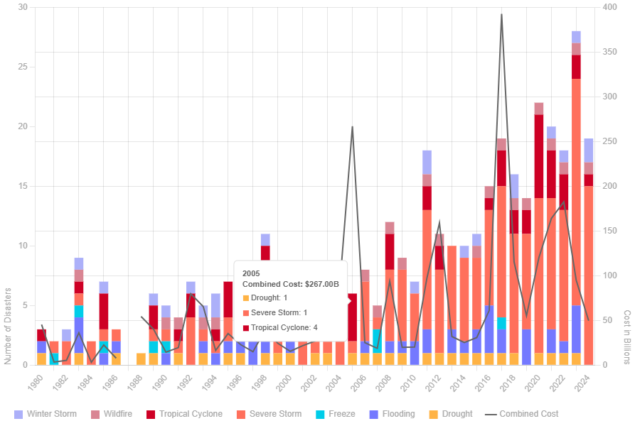 Согласно отчету Всемирной метеорологической организации (WMO), за последние 50 лет количество погодных и климатических катастроф увеличилось более чем в 5 раз. За тот же период экономический ущерб от них составил свыше 3,6 трлн долларов по всему миру. Наиболее уязвимыми регионами остаются Африка, Юго-Восточная Азия, островные государства и арктические территории, где погодные аномалии часто сопровождаются отсутствием инфраструктуры раннего предупреждения.
