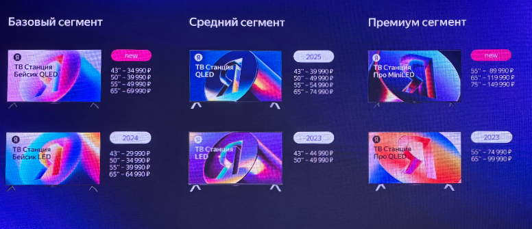 Флагманская «ТВ Станция Про MiniLED» ожидаемо дороже. За 55-дюймовую модификацию придется заплатить 89 990 рублей, вариант с экраном 65 дюймов оценен в 119 990 рублей, а топовая модель с диагональю 75 дюймов — в 149 990 рублей.
