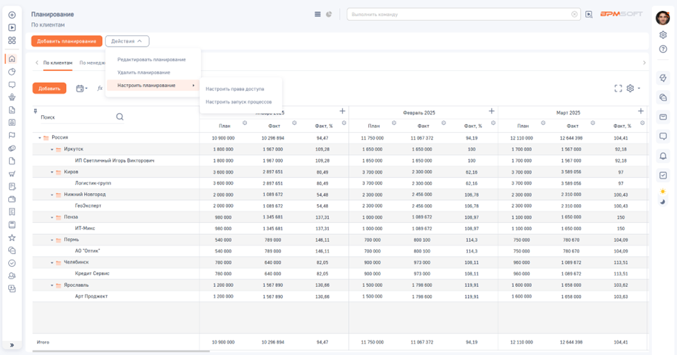 В CRM-продукте «Управление продажами» полностью обновлен модуль планирования. С помощью low-code инструментов пользователи могут настраивать планы на основе данных из связанных объектов и запускать бизнес-процессы по заданным триггерам.