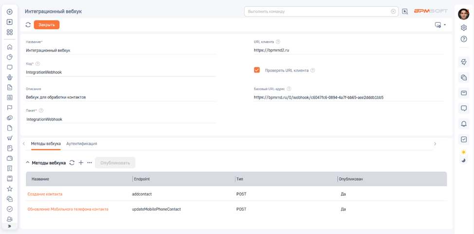 «Также в BPMSoft 1.8 появился визуальный конструктор обработки вебхуков. Он позволяет настраивать параметры, действия, авторизацию и формат данных без привлечения разработчиков — весь процесс занимает считанные минуты. Поддерживается быстрое добавление новых URL без перекомпиляции системы, а также перенос вебхуков между средами — dev, test, prod — что особенно удобно при тиражировании решений».