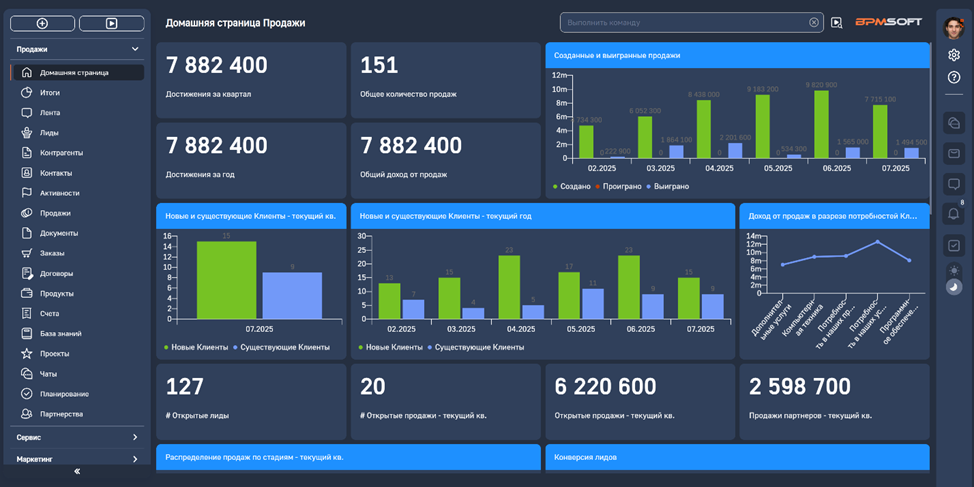 Главное новшество — автоматическая реакция на ключевые показатели. При снижении конверсии или отклонении от плана система сама запускает нужные процессы — ставит задачи, отправляет уведомления, включает корректирующие сценарии. Все это позволяет оперативно управлять выполнением планов, повышать устойчивость команды к изменениям и держать продажи под контролем в реальном времени.