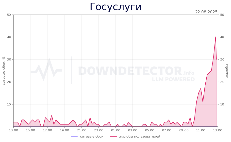 Портал государственных услуг с 12 часов по московскому времени 22 августа подвергается массированной DDoS-атаке из-за рубежа. В связи с работой системы фильтрации трафика незначительное число пользователей может столкнуться с трудностями при входе на портал. Пик жалоб пришелся на 12.50, когда граждане начали массово сообщать о невозможности воспользоваться электронными государственными услугами.
