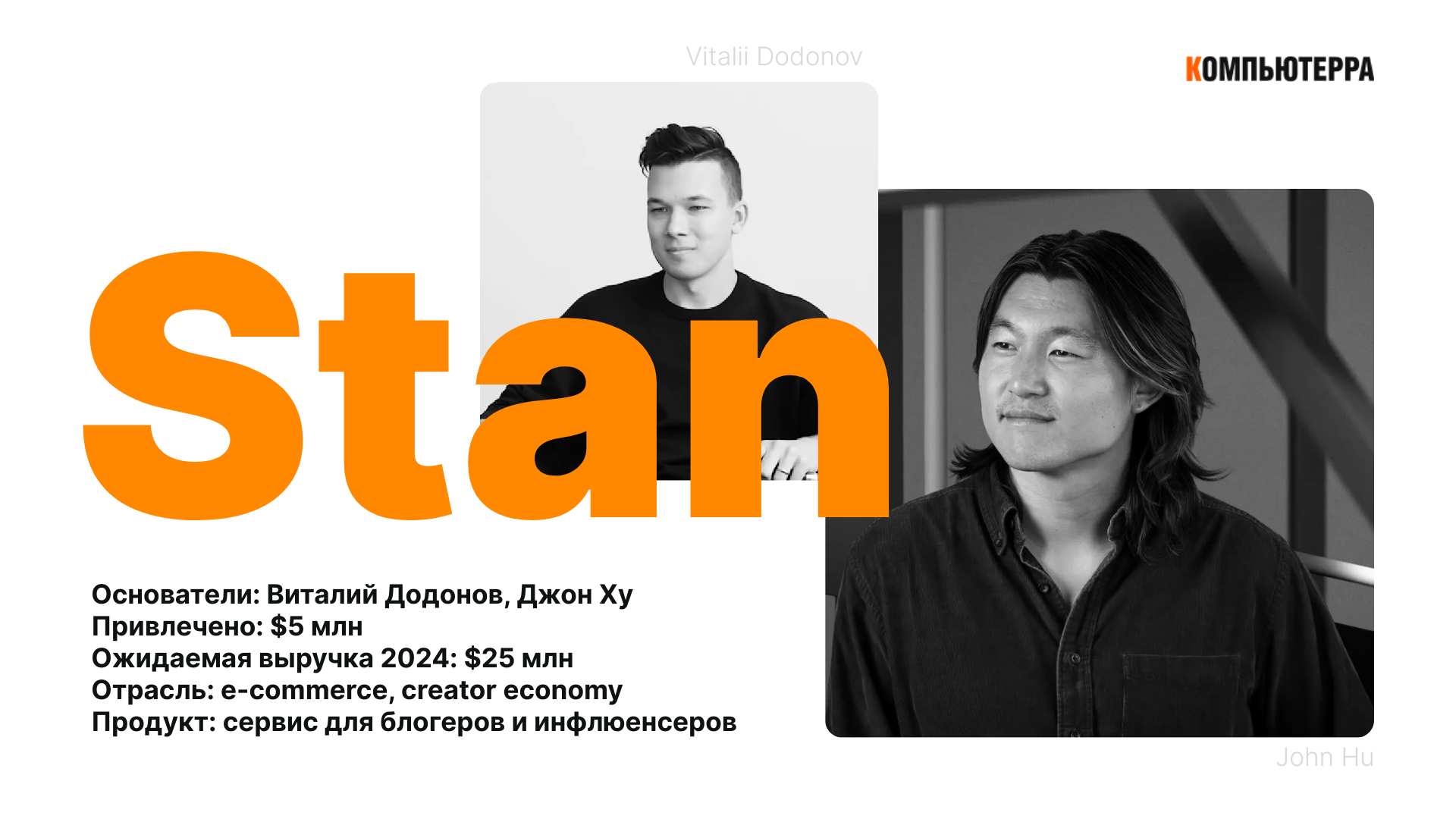 Stan — стартап Виталия Додонова и Джона Ху, получивший $5 млн инвестиций от Forerunner Ventures. Основной продукт компании помогает блогерам и инфлюенсерам монетизировать аудиторию через персонализированные онлайн-магазины в соцсетях.