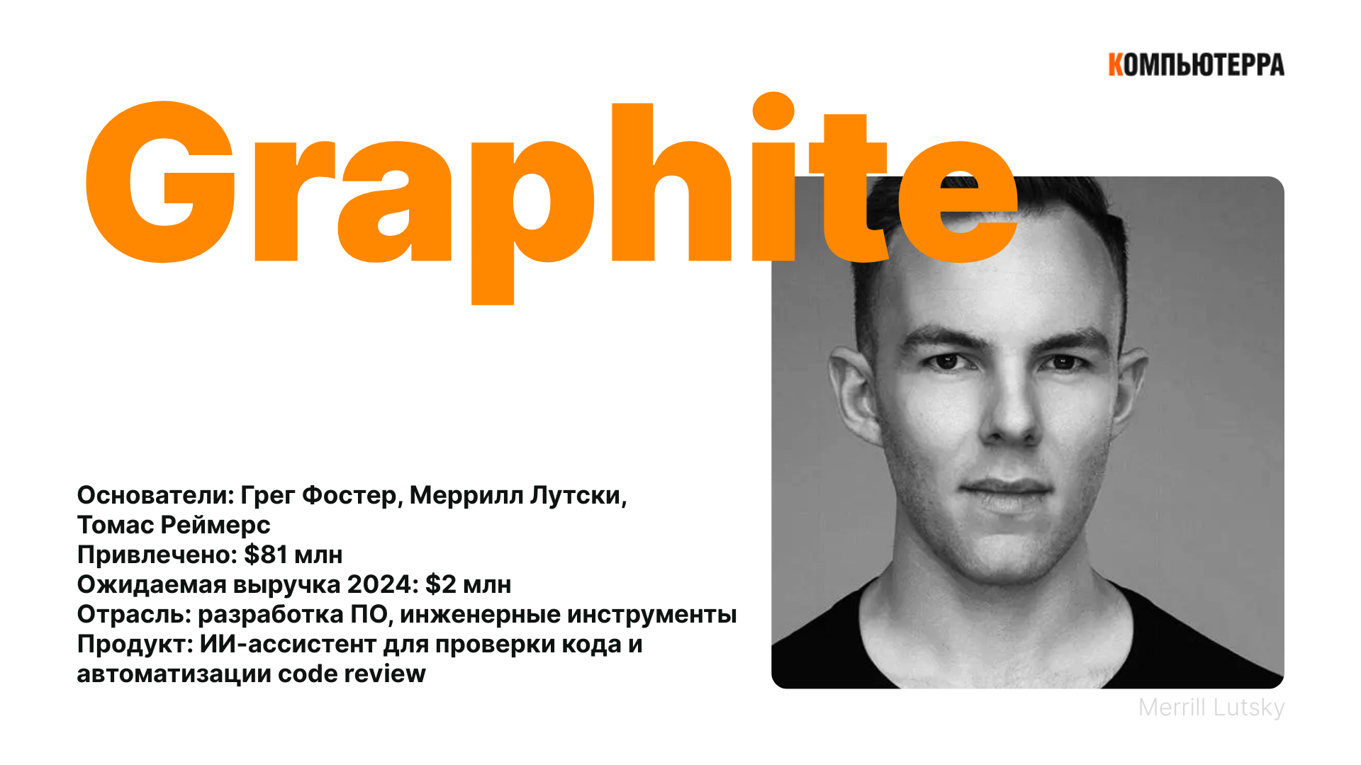 Грег Фостер, Меррилл Лутски и Томас Реймерс создали Graphite в Нью-Йорке. Стартап занимается автоматизацией code review и привлек $81 млн от венчурных фондов Accel, Andreessen Horowitz и Homebrew.