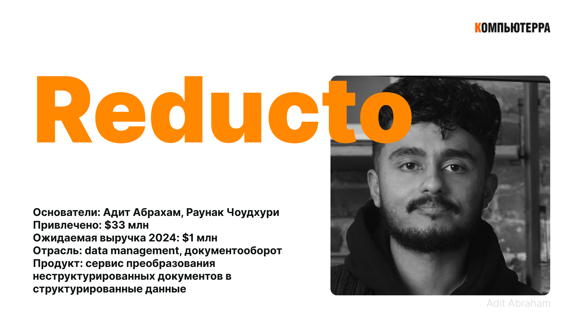 Reducto основан Адитом Абрахамом и Раунаком Чоудхури. Компания собрала $33 млн от Benchmark и First Round Capital, сосредоточившись на решении проблемы неструктурированных данных.