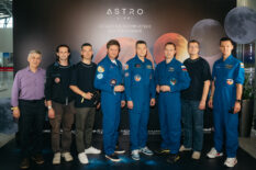 Самолеты сопровождали космонавты Роскосмоса: Олег Кононенко — командир отряда космонавтов Роскосмоса и мировой рекордсмен по количеству времени нахождения на Международной космической станции, Дмитрий Петелин, Константин Борисов, Андрей Бабкин — заместитель командира отряда по научно-исследовательской испытательной работе.