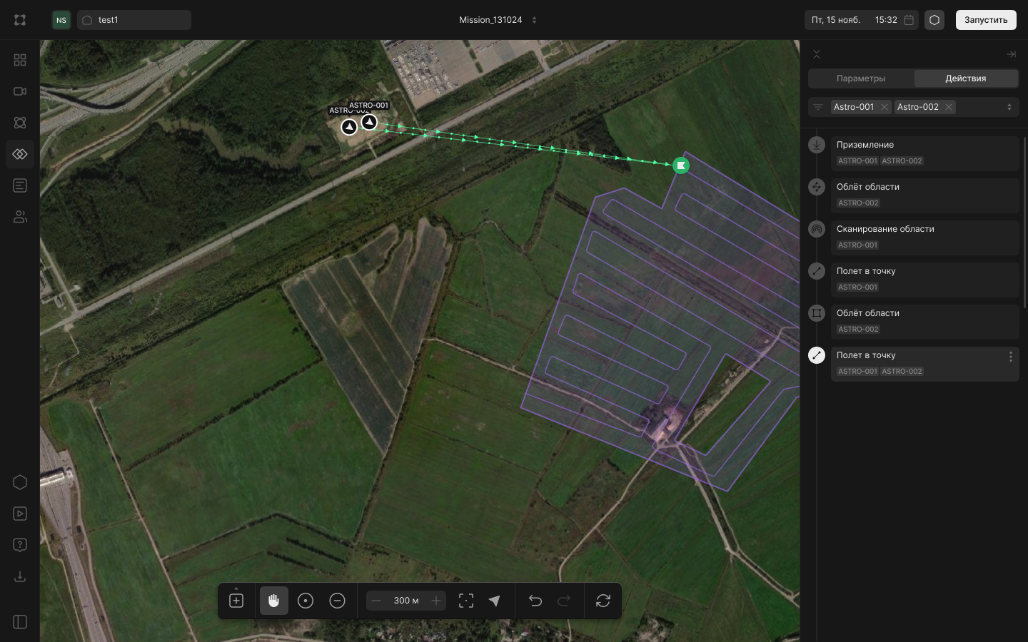 Кроме того, облачный Command Center на платформе выступает центральной точкой управления парком беспилотников. Он включает средства инвентаризации, мониторинга технического состояния и планирования обслуживания, что упрощает эксплуатацию крупной распределенной инфраструктуры. Здесь же создаются и запускаются миссии любой сложности — от единичных вылетов до многоэтапных операций, с возможностью отложенного старта и автоматического повторения по расписанию.