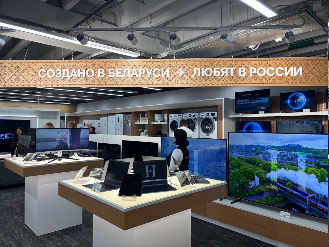 Сеть «М.Видео-Эльдорадо» открыла у себя первую бренд-зону «Сделано в Беларуси», где собраны флагманские модели HORIZONT, ATLANT, GEFEST и других производителей.