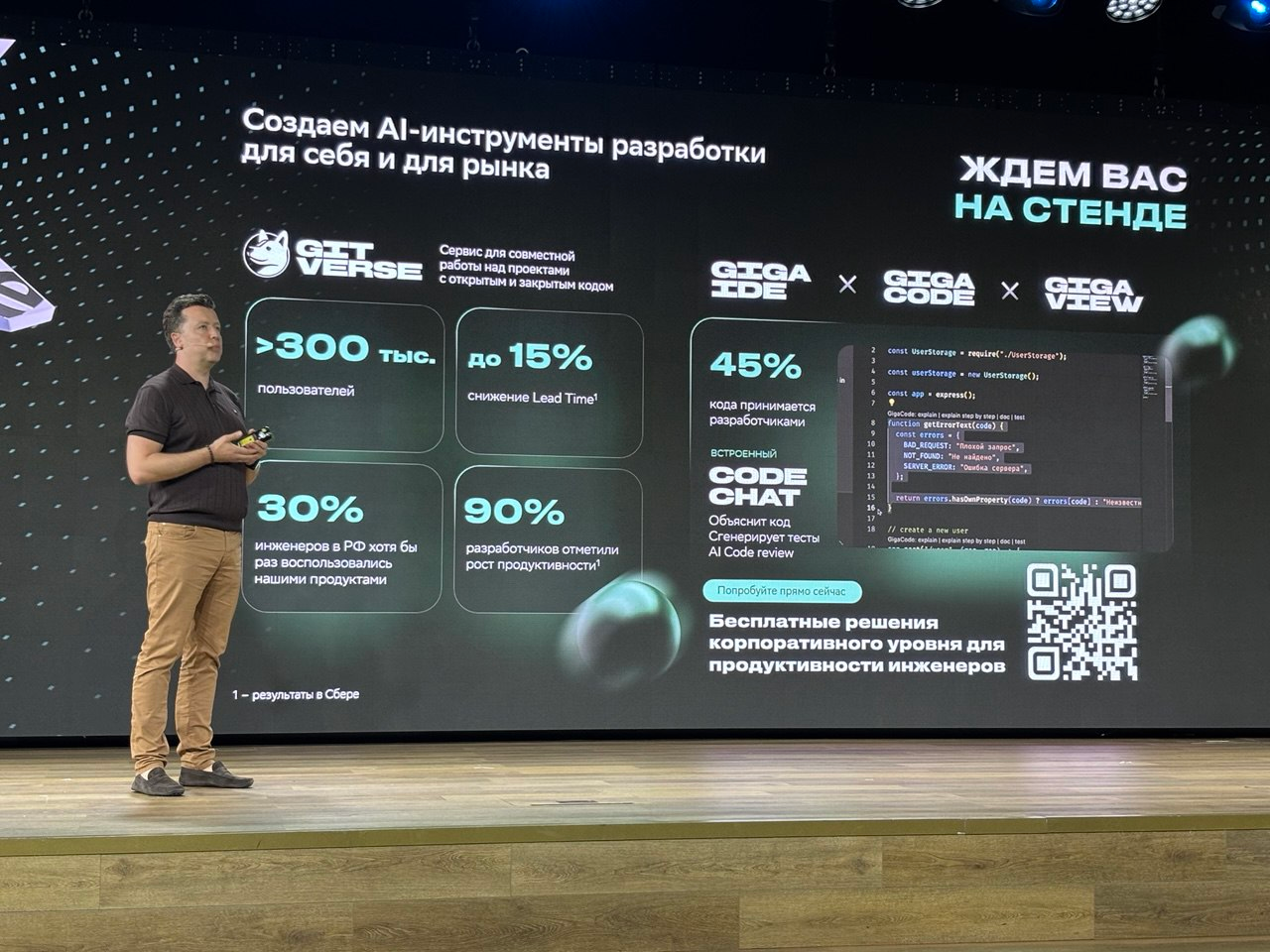 Спикер акцентировал внимание на высокой стоимости разработки ИИ, необходимости инвестиций в вычислительные мощности и подготовку инженеров, а также пригласил разработчиков подключаться к проектам банка, включая открытый универсальный агент и инструменты Gitverse, GigaСode и GigaМiew.