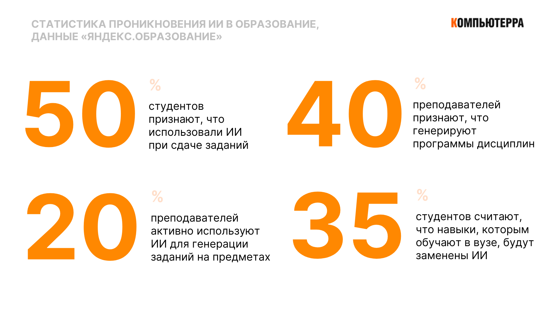 Сейчас высшее образование уже невозможно представить без искусственного интеллекта. Согласно исследованию, 40% преподавателей создают образовательные программы при помощи ChatGPT, еще 20% поручают ИИ генерацию заданий. При этом 63% студентов активно используют искусственный интеллект в учебе.