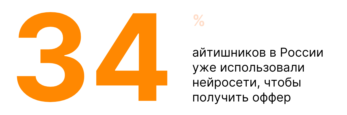 Насчет поиска новой работы мнения айтишников разделились. 31% считают его сложным, столько же — простым, а почти 40% затруднились с ответом. Но есть одна интересная деталь: треть кандидатов (34%) уже использовали нейросети, чтобы получить оффер. Это может быть генерация резюме, подготовка к собеседованию, оптимизация сопроводительных писем или даже помощь в выполнении тестовых заданий.