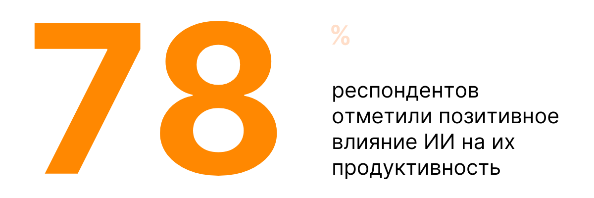 Согласно исследованию, 78% участников опроса заявили о росте собственной продуктивности благодаря ИИ. При этом 56% респондентов уверены: в ближайшие три года значительная часть их обязанностей будет автоматизирована. Это ожидание меняет отношение специалистов к собственному развитию. Уровень удовлетворенности текущей работой составил 6,8 балла из 10, а доходом — 6,1.