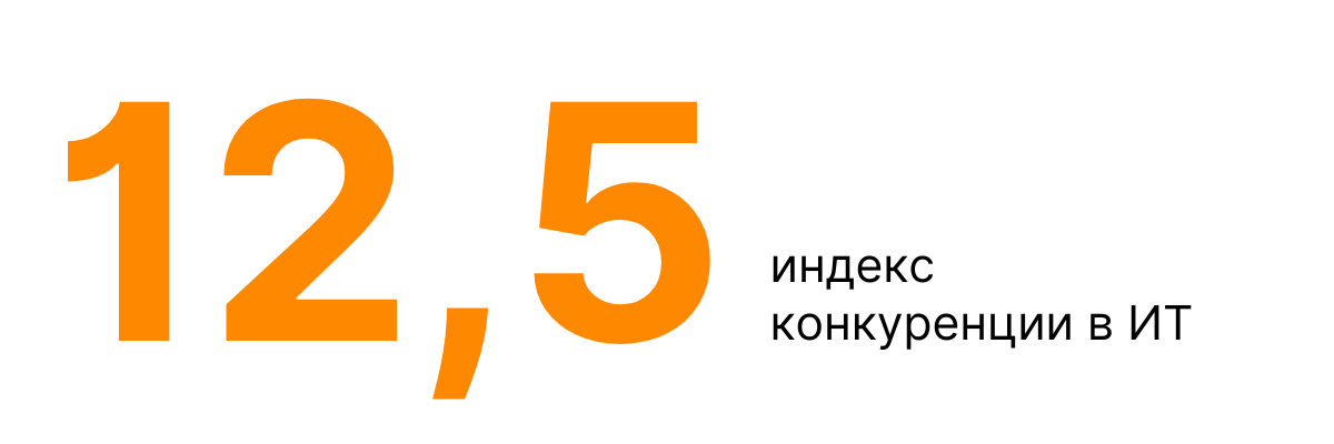 HeadHunter фиксирует серьезный дисбаланс на рынке труда: индекс конкуренции в ИТ достиг 12,5, то есть на одну вакансию приходится более дюжины откликов, но при этом наблюдается дефицит квалифицированных senior-специалистов (конкуренция 2,5).