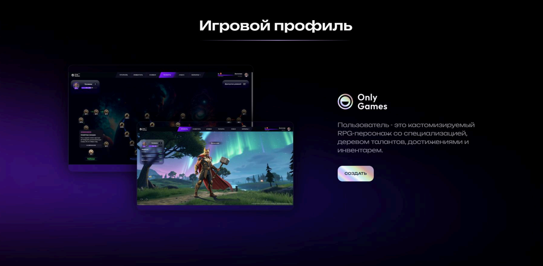 OnlyGames — это «песочница» для геймеров и для разработчиков, создающих новые миры. Изначально при регистрации пользователь выбирает роль — «игрок» или «разработчик». Игрок затем может выбрать роль стримера, киберспортсмена.