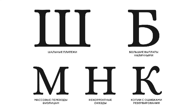 Например, под буквой Б скрываются большие выплаты наличными, под буквой И — иностранное ПО, а под буквой М — массовые переводы физлицам.