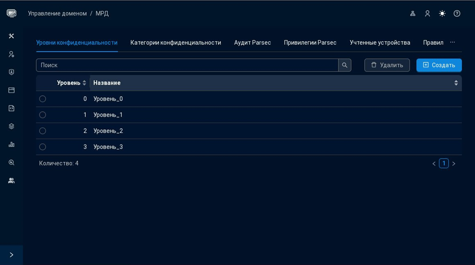 В ALD Pro 3.0 реализовано централизованное управление функциями мандатного контроля доступа, которые основаны на комплексе СЗИ PARSEC. Через портал управления администраторы могут определять уровни и категории конфиденциальности (МКЦ/МРД) и назначать их конкретным сотрудникам.