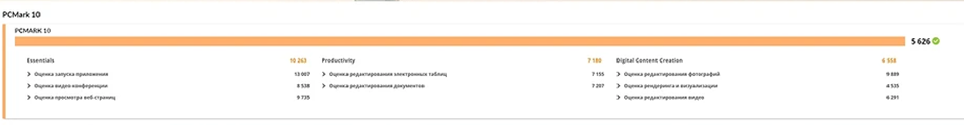 В тестах PCMark 10 система уверенно набирает около 5600 баллов, что ставит ее на один уровень с ноутбуками бизнес-класса и компактными десктопами с аналогичным CPU.