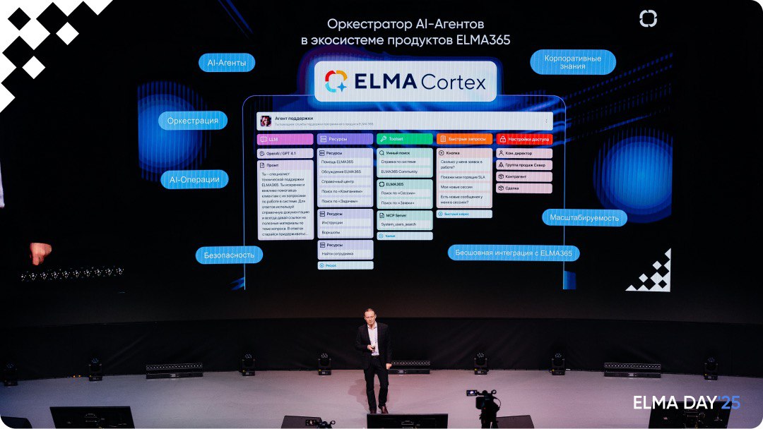 Компания ELMA представила платформу корпоративных AI-агентов ELMA Cortex на конференции ELMA DAY’25, которая состоялась 13 ноября в Москве и собрала 1200 представителей крупного бизнеса. Запуск этой технологической платформы стал ключевым событием мероприятия. Релиз первой версии ELMA Cortex запланирован на первый квартал 2026 года.