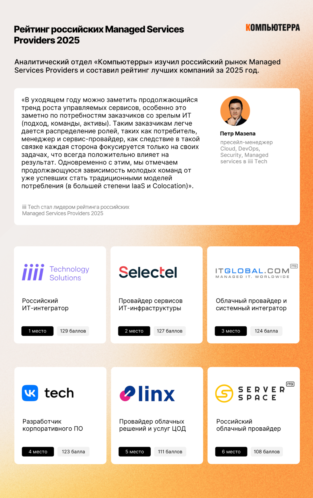 Аналитический отдел «Компьютерры» изучил российский рынок Managed Services Providers и составил рейтинг из шести лучших компаний за 2025 год.