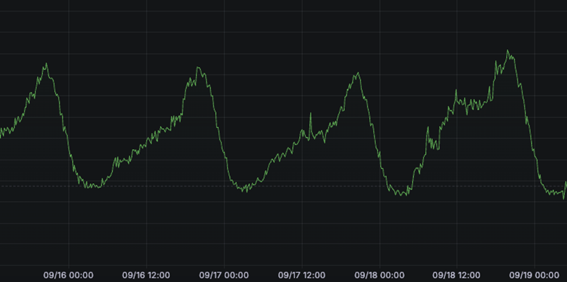 Газпром ID имеет один из самых нетипичных профилей нагрузок среди всех систем аутентификации. В отличие от большинства сервисов, где трафик распределен относительно равномерно и подчиняется четко выраженному суточному циклу, нагрузка Газпром ID резко меняется в зависимости от активности пользователей. Типичная картина трафика обычных сервисов аутентификации выглядит следующим образом: