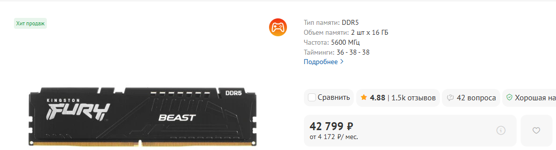 Для примера: в июне 2025 года оперативная память Kingston FURY Beast Black 32 ГБ в магазине DNS стоила 8600 рублей. На момент написания этого материала — 1 декабря 2025 года — она стала уже 30000 рублей. Цена выросла в 3,5 раза. В ночь со 2 на 3 декабря цена выросла почти до 43 тысяч.