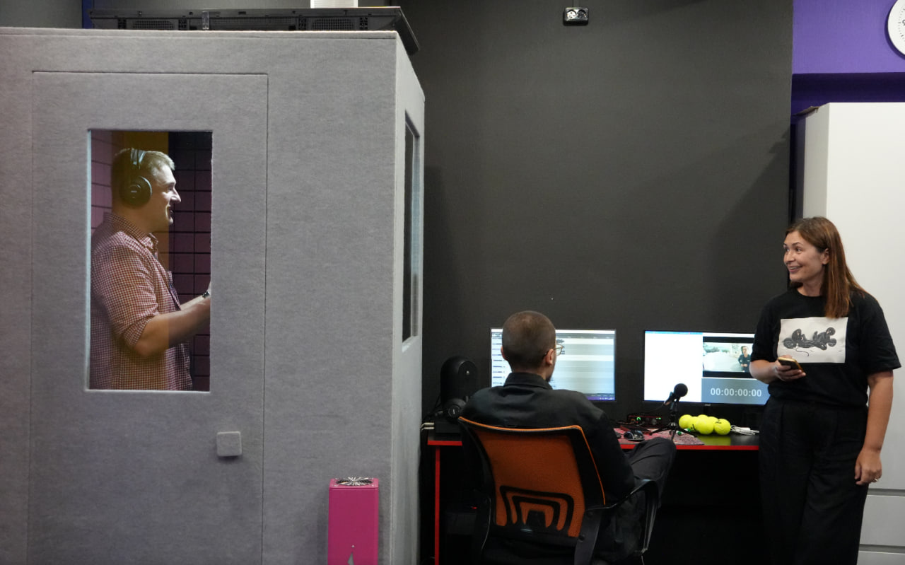 Процесс очень напоминает настоящую работу в дубляже — с остановками, комментариями и поиском нужного звучания. В итоге у каждого остается записанный фрагмент с собственной озвучкой.