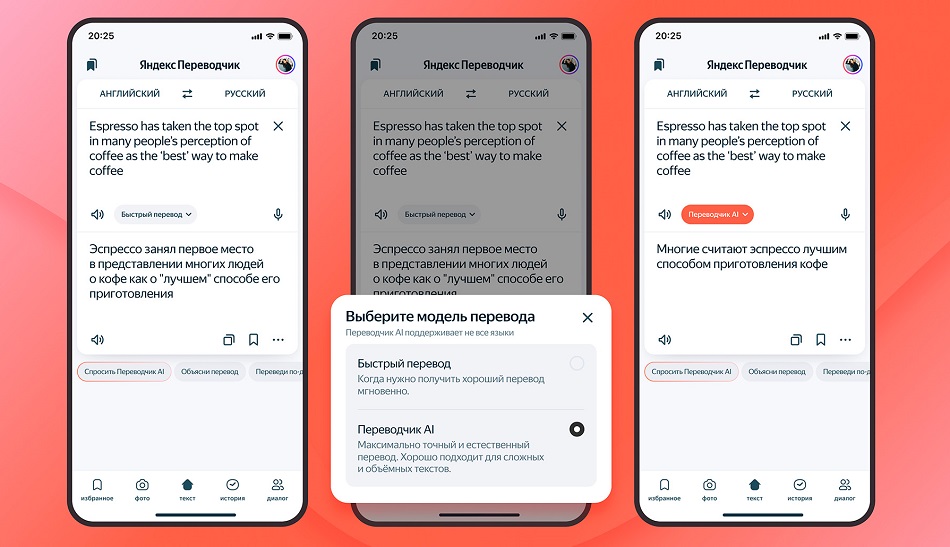 Пользователи могут выбирать между новым и классическим режимом. ИИ-режим рекомендован для текстов, где критически важны точность и естественность, в то время как классический подходит для быстрого перевода простых фраз.
