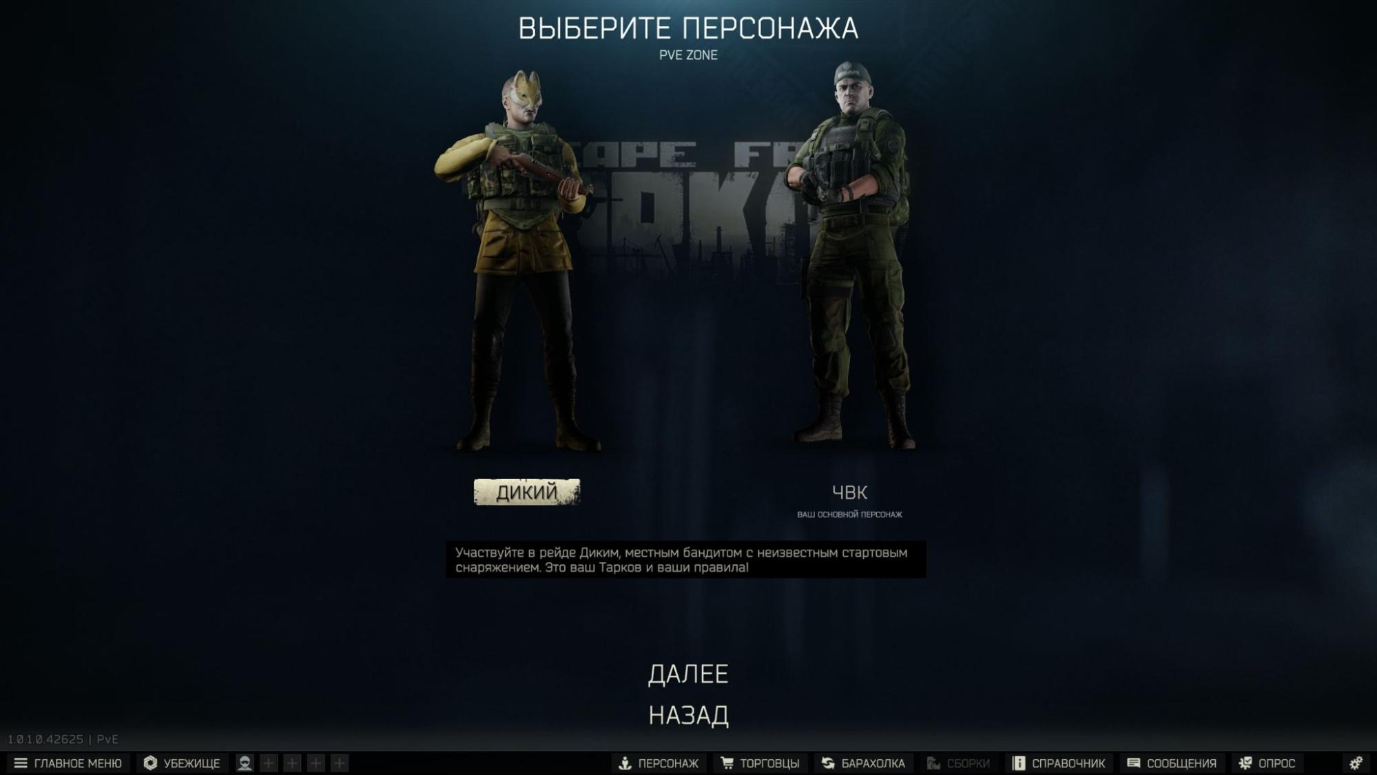 Частично снизить риск позволяет игра за так называемых «Диких» — персонажей с заранее подготовленным снаряжением. Этот персонаж полезен в ситуациях, когда внутриигровые ресурсы на исходе, но он имеет ограничения: играть за «Дикого» можно раз в 20 минут, а гибель негативно влияет на отношения с торговцем.