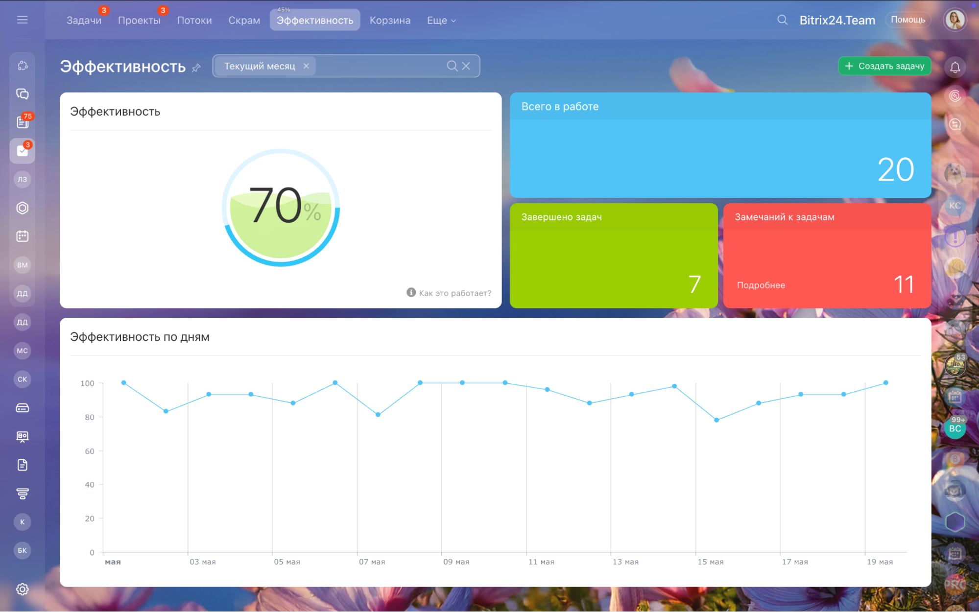 «Битрикс24» не навязывает единый подход. Продажи могут работать со списками задач, маркетинг — с Канбан-досками, проектные команды — с диаграммой Ганта, а разработка — со Scrum-подходом.