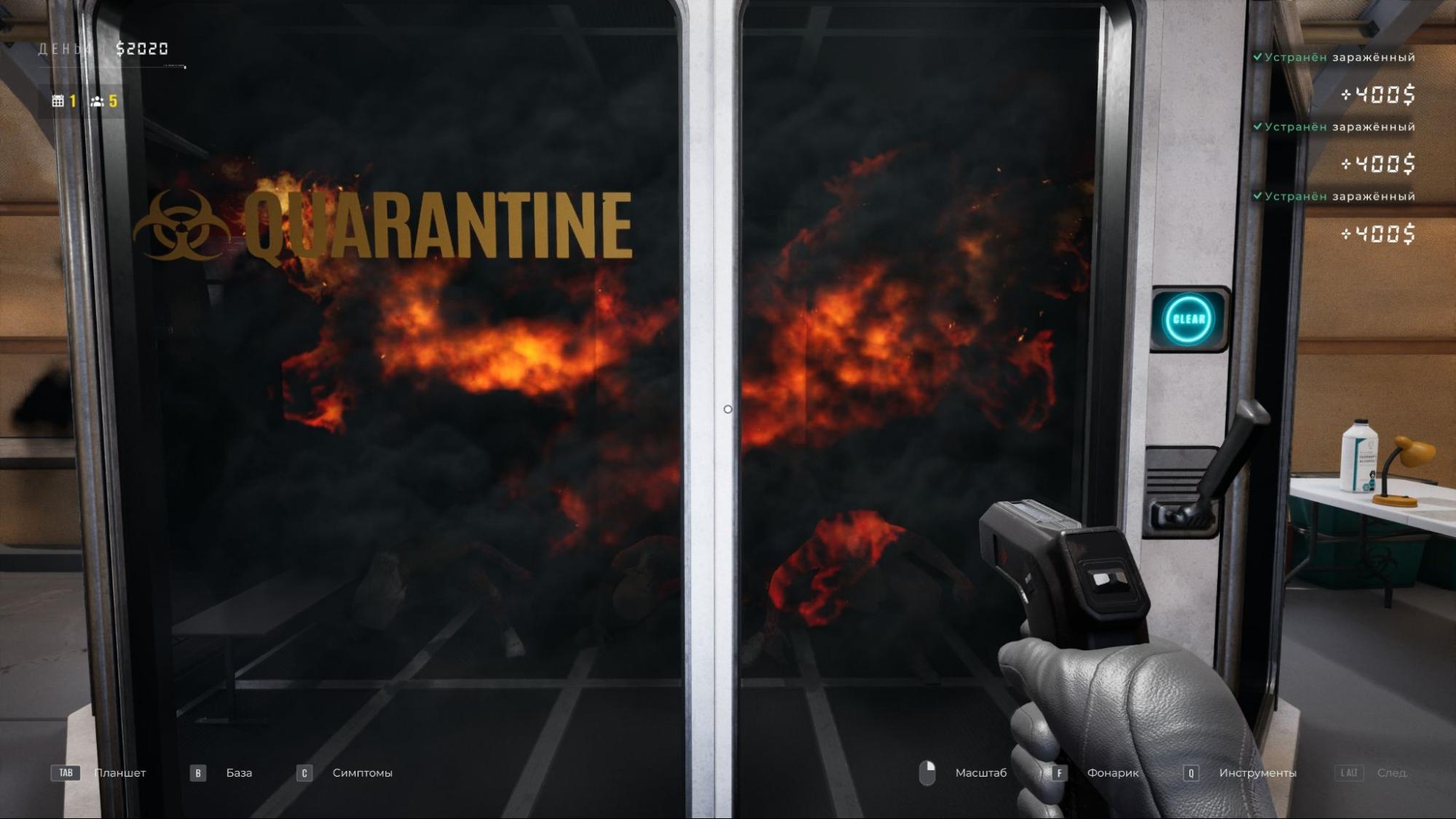 Основная механика выстроена вокруг риска ошибки. Пропущенный зараженный может привести к вспышке болезни внутри базы, а излишняя строгость — к потере здоровых людей и ресурсов. Эти правила формируют основу игрового процесса на старте и задают тон всему прохождению.