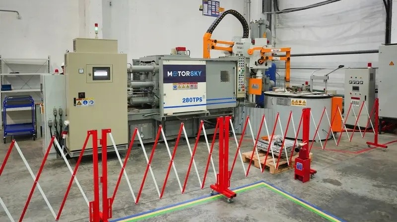 Производственный процесс охватывает все этапы: от штамповки магнитопровода и литья корпусов до намотки, изоляции и финальной сборки. Для этого задействован парк специализированного оборудования, включающий высокоскоростной пресс, машину литья под давлением, автоматизированные линии нанесения изоляции и намотки, а также автоматы для точной установки магнитов, пайки и балансировки.