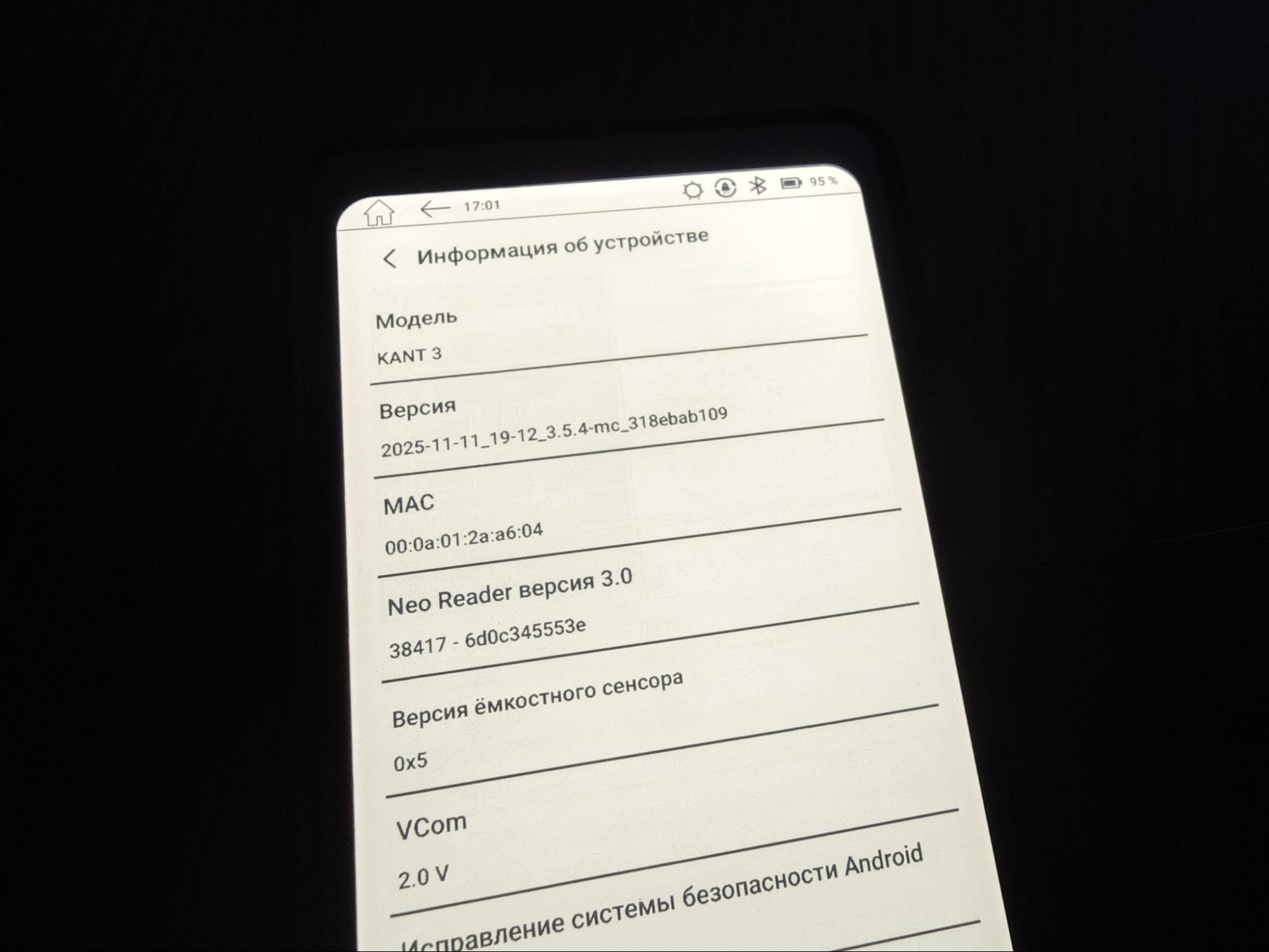 Аппаратная платформа «Кант 3» строится вокруг 8-ядерного процессора с тактовой частотой 2 ГГц. Компанию ему составляют 2 ГБ оперативной памяти и накопитель на 32 ГБ. По меркам современных смартфонов цифры, прямо скажем, скромные, однако для узкоспециализированного E Ink-устройства такой связки хватает с избытком.