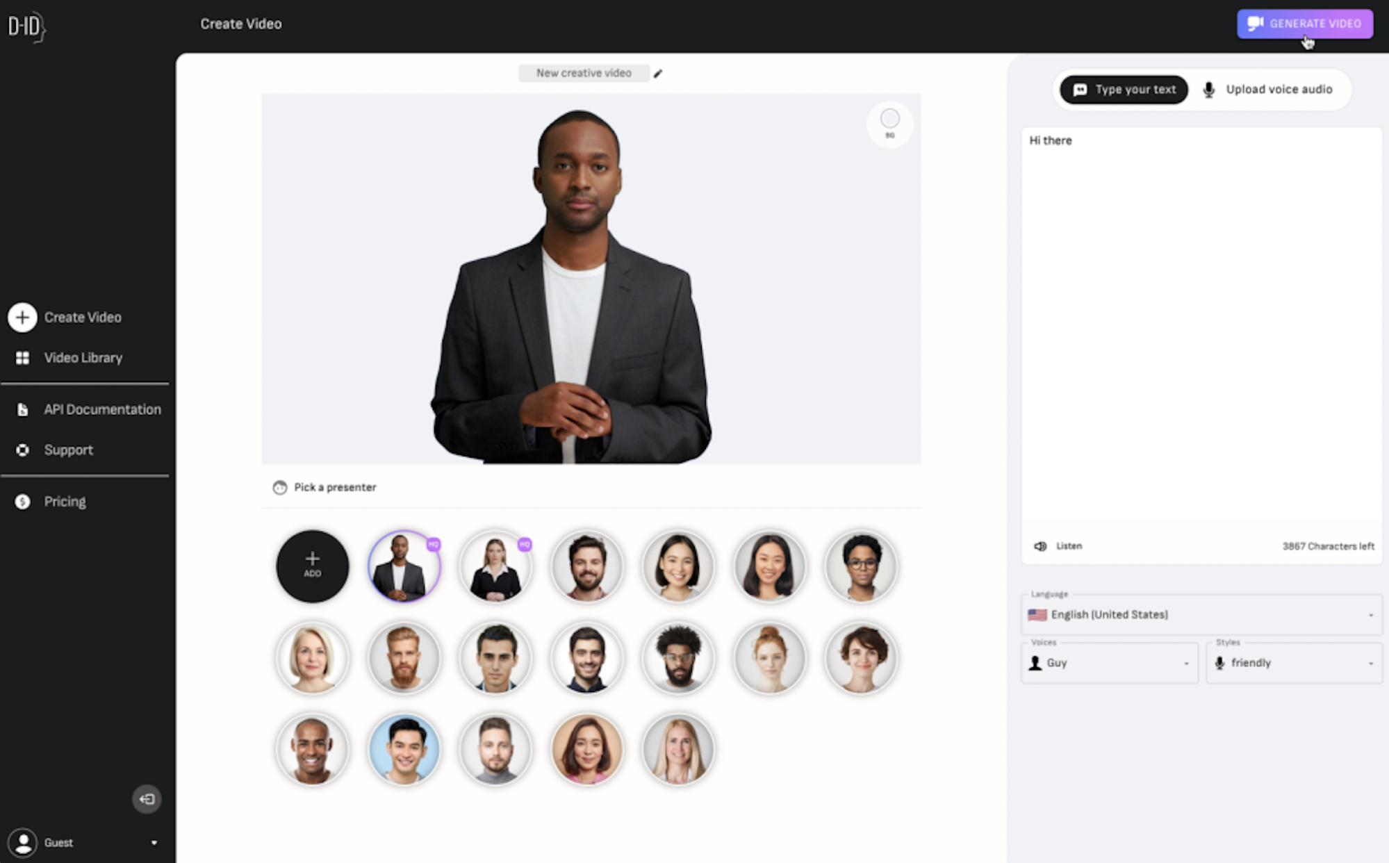 DeepBrain AI — еще один заметный сервис в сегменте ИИ-ведущих, который предлагает аватары с очень естественной внешностью и мимикой. Платформа позволяет создавать видео из текста, поддерживает форматы новостных выпусков и презентаций, дает возможность разрабатывать кастомные аватары под конкретный бренд.