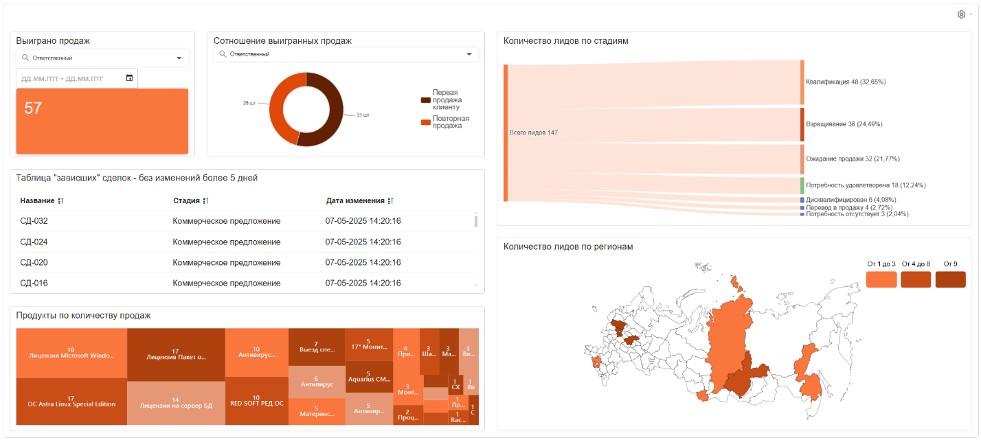 «Пользователи BPMSoft получат BI-инструмент, работающий нативно, без кастомной разработки. Вместе с обновлением доступны преднастроенные дашборды – готовые аналитические панели «Продажи» и «Обращения», что позволяет увидеть практический результат на старте работы, без сложной настройки», — сообщил Алексей Гришин, технический директор BPMSoft.