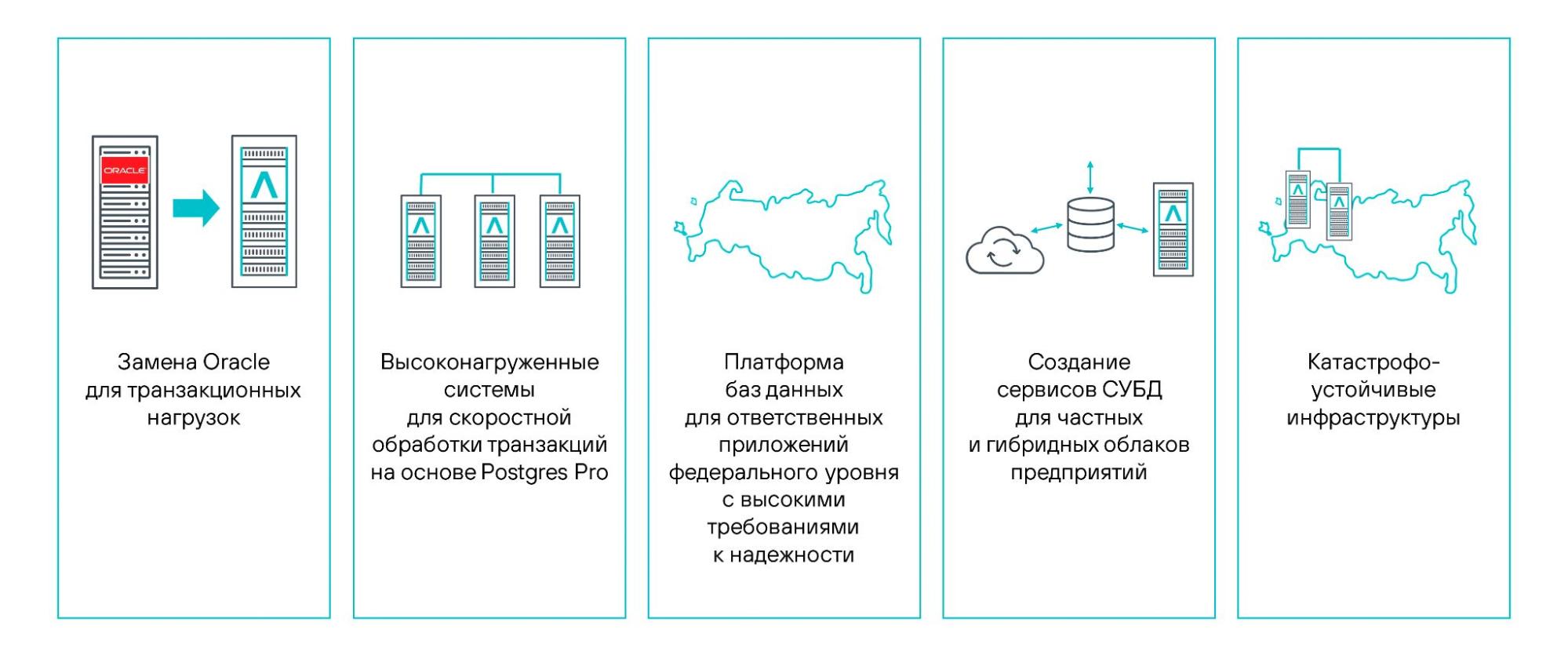 - Замену зарубежных СУБД. Миграция с Oracle и других систем для транзакционных нагрузок с сохранением или повышения производительности.