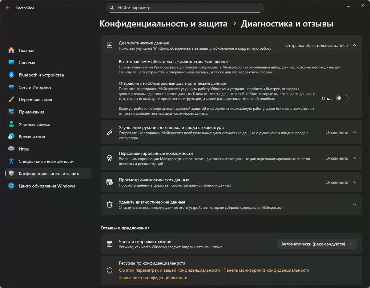 Многие пользователи хотят максимально ограничить телеметрию в Windows 11 и сократить передачу диагностических данных в Microsoft, не устанавливая сторонние программы. Настройка приватности в операционной системе важна для тех, кто не хочет отправлять лишнюю информацию о диагностике, использовании и работе системы. В этой инструкции описаны методы, позволяющие максимально ограничить передачу данных Microsoft и снизить объем собираемой телеметрии.