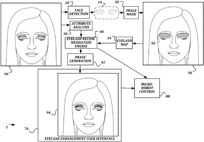 Компания L’Oréal запатентовала систему для автоматического наращивания ресниц с помощью микророботов. Разработка объединяет компьютерное зрение, рекомендательный алгоритм на базе ИИ и прецизионную робототехнику — пользователь выбирает желаемый эффект в приложении, а микророботы под управлением системы наносят каждую ресничку с хирургической точностью.