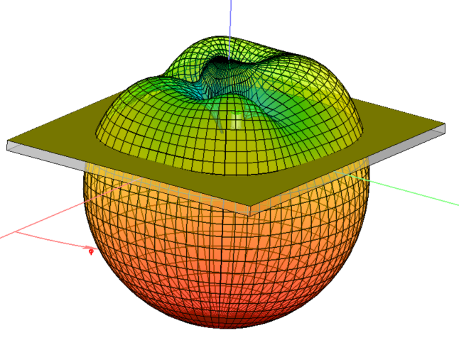 Чтобы оценить не заявленные, а реальные возможности системы, мы протестировали «ГАММУ» во всех четырех режимах работы. Через модуль «Метод конечных элементов, МКЭ (FEM)» нами совместно с экспертами была спроектирована патч-антенна с непосредственной запиткой. После расчета в режиме МКЭ получена диаграмма направленности.