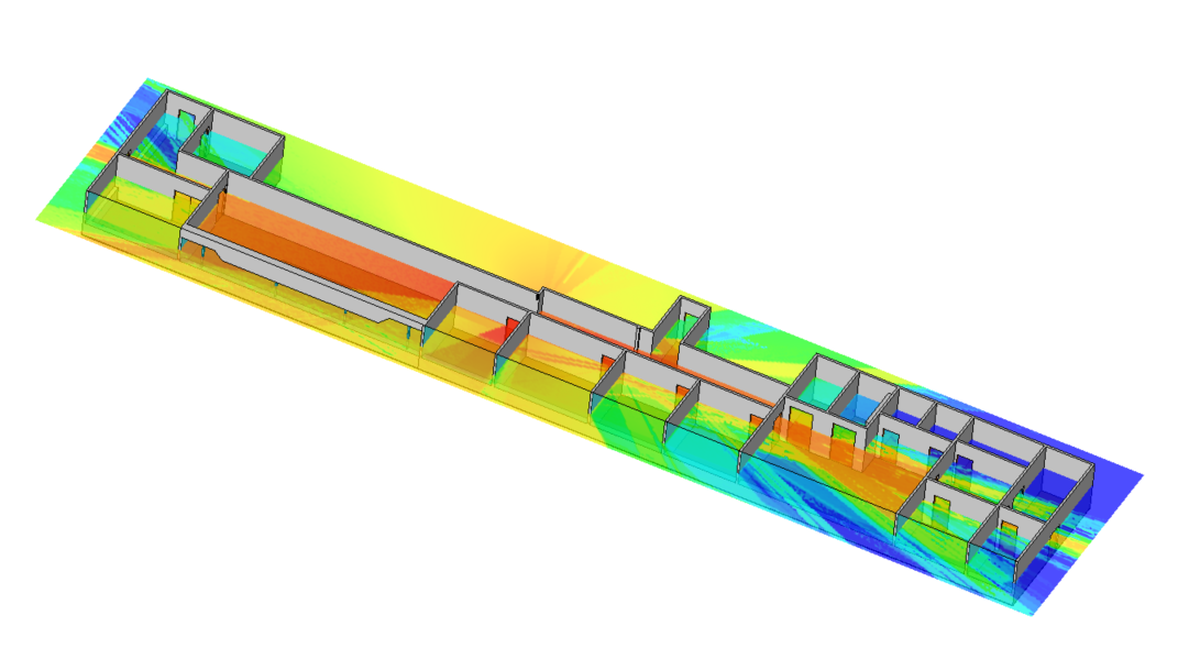 Для того чтобы оценить «Асимптотический метод (Asymptotic Method)», в систему была импортирована 3D-модель помещения с источником сигнала. Таким образом, через модуль было легко спроектировано распространение радиоволн внутри пространства с учетом законов геометрической и физической оптики.