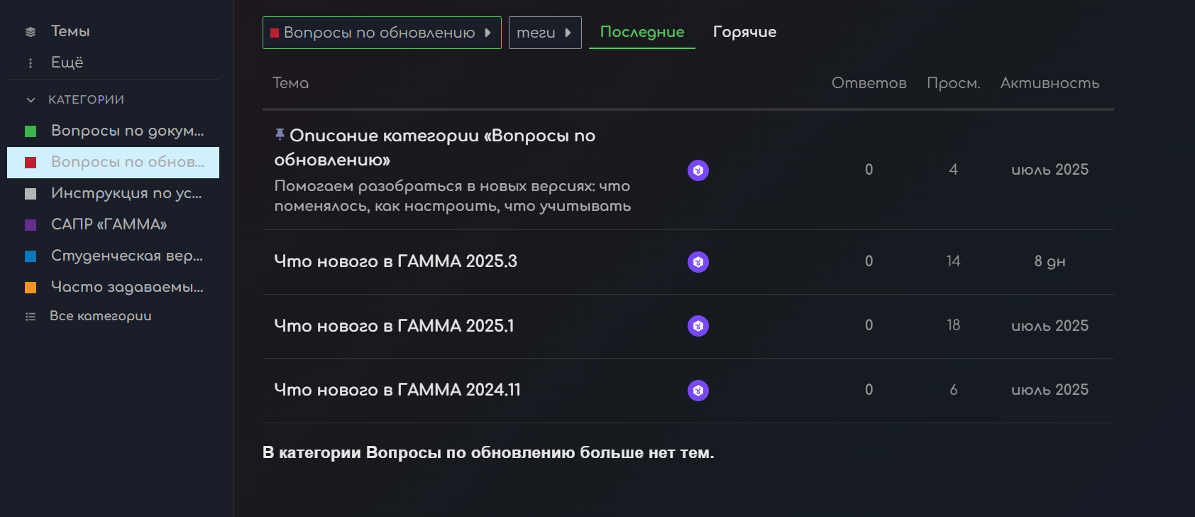 Помимо классической поддержки, у проекта существует открытый комьюнити-портал. Он доступен без ограничений и удобно структурирован: отдельно вынесены вопросы по документации, обновлениям и эксплуатации системы, а часто задаваемые вопросы объединены в единую категорию.