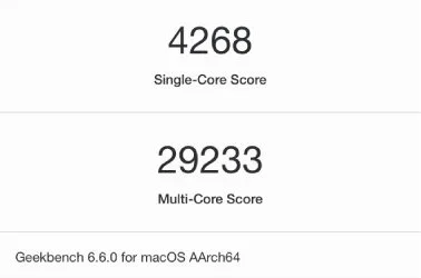 16‑дюймовый MacBook Pro с процессором M5 Max набрал 29 233 балла в мульти‑ядерном тесте, в то время как M3 Ultra с 32 ядрами показал 27 726 баллов. Однопоточная производительность в 4 268 баллов тоже впечатляет, что ставит M5 Max в число лидеров среди всех потребительских процессоров.