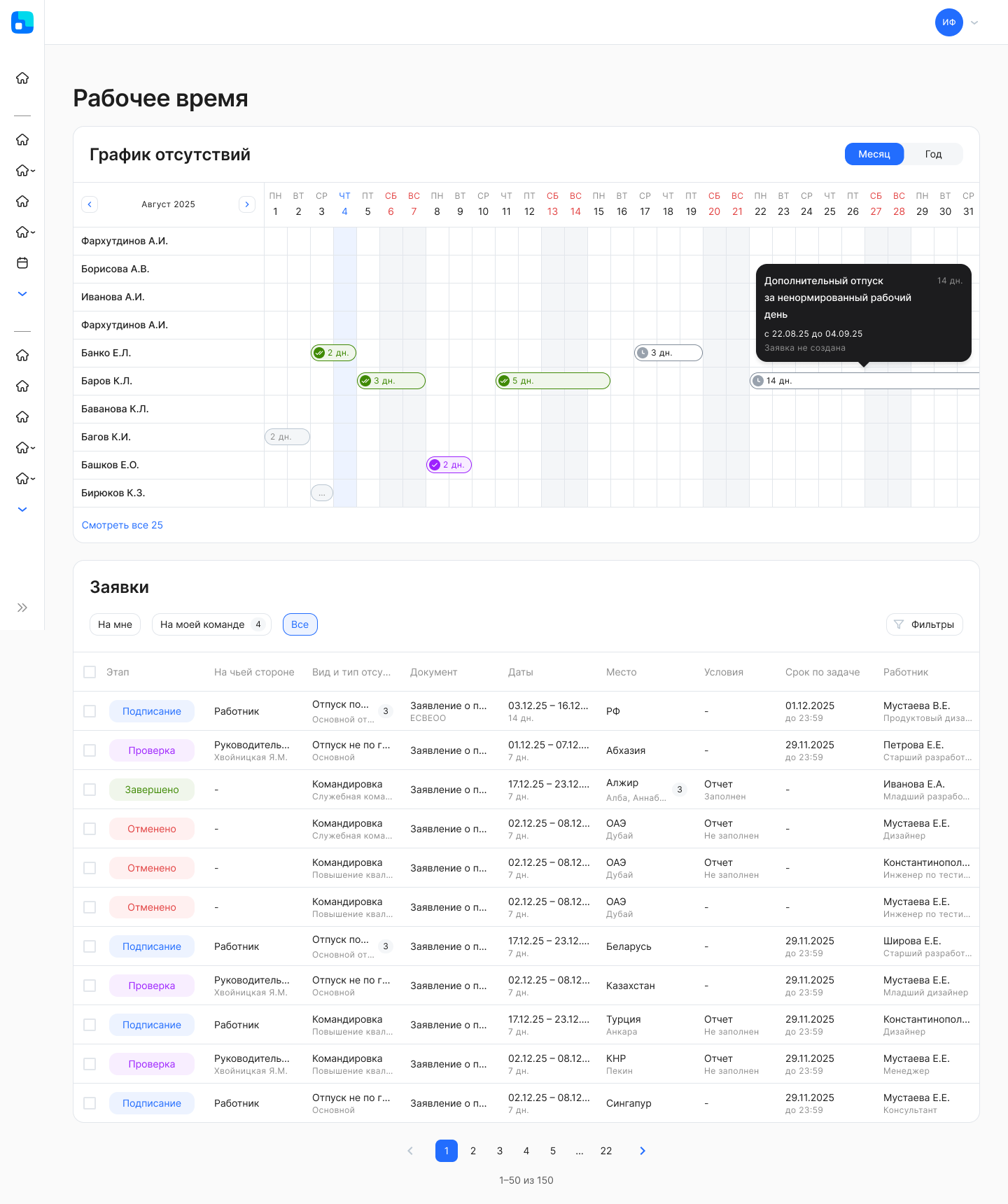 Кадровые специалисты видят статусы заявок, сроки и этапы согласования в реальном времени, исключая потерю документов.