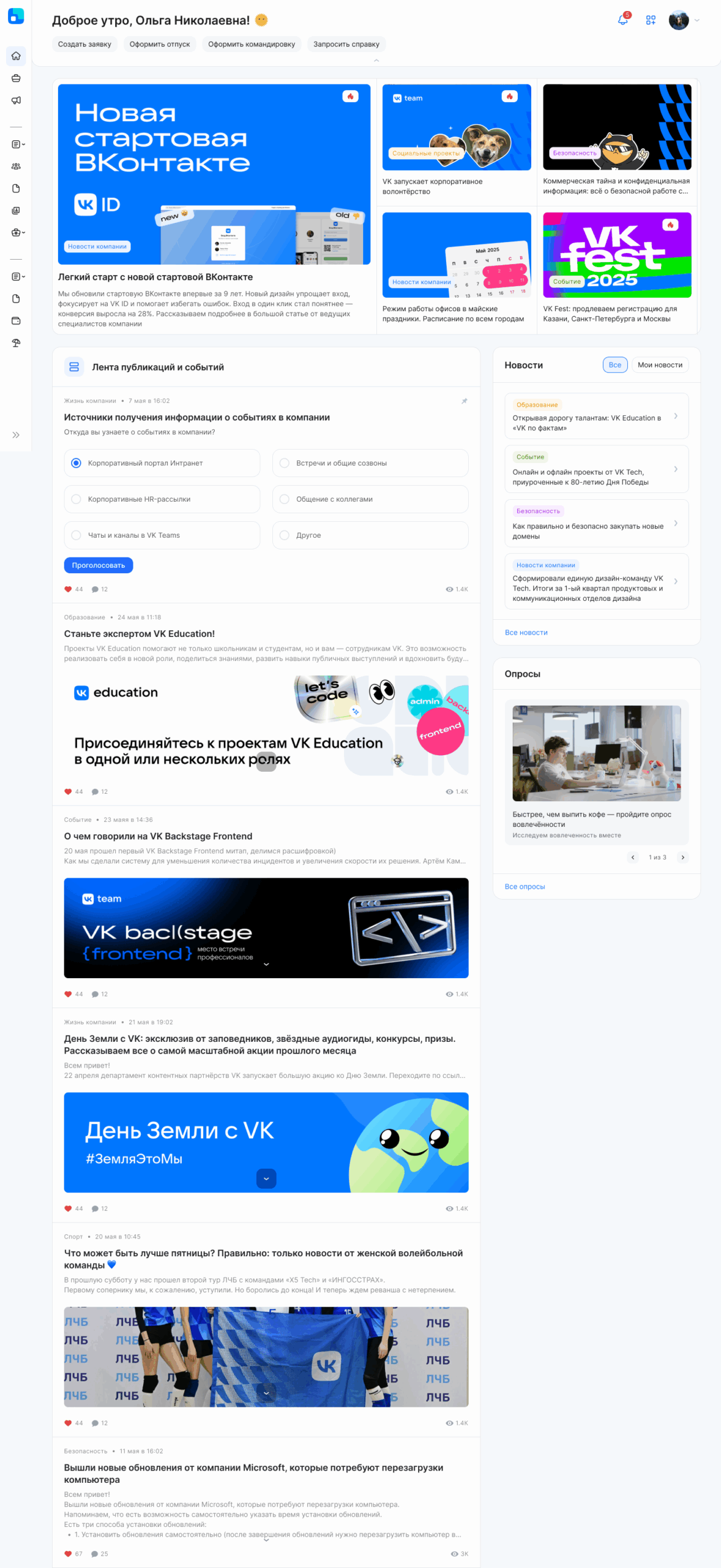 Отдельный слой платформы — портальные модули. Новости, опросы и сообщества помогают не только информировать сотрудников о жизни компании, но и вовлекать их во внутренние процессы, объединять по интересам и собирать обратную связь по важным для бизнеса вопросам. Такой набор делает платформу не только кадровым инструментом, но и рабочей средой для ежедневного взаимодействия сотрудников и HR-службы.