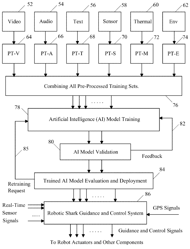 Калифорнийская компания General Cybernation Group запатентовала семейство роботизированных морских обитателей — акул, дельфинов и рыб, оснащенных генеративным искусственным интеллектом. Эти автономные подводные аппараты имитируют внешний вид и поведение реальных животных, чтобы незаметно вести наблюдение, исследовать глубоководные экосистемы, искать сокровища затонувших кораблей и даже обучаться у живых дельфинов, просто плавая рядом с ними.
