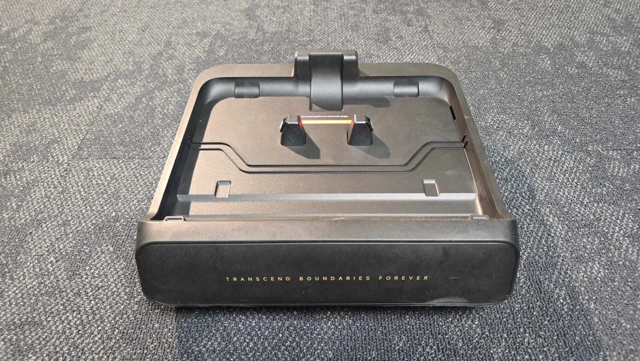 Для заряда устройства в комплект входит док-станция, на которую ставят пылесос после завершения уборки. На базе также можно запускать режим очистки роликовой щетки, о котором подробнее расскажем в обзоре. Еще в коробке лежала щетка для чистки пылесоса.