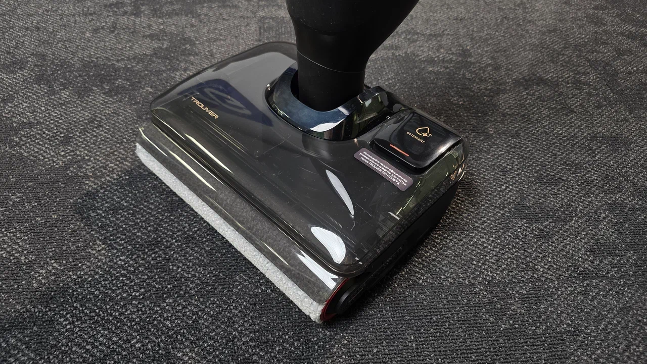 Система влажной уборки в Trouver M50 устроена по принципу моющего роликового пылесоса. В корпусе расположен бак с чистой водой, из которого жидкость подается на вращающуюся роликовую щетку. Она постоянно смачивается водой и во время вращения протирает поверхность пола, одновременно поднимая грязь и пыль. Ролик проходит по полу и выполняет сразу две задачи: мягкий ворс щетки оттирает загрязнения, а поток воздуха всасывает грязную воду обратно в пылесос.