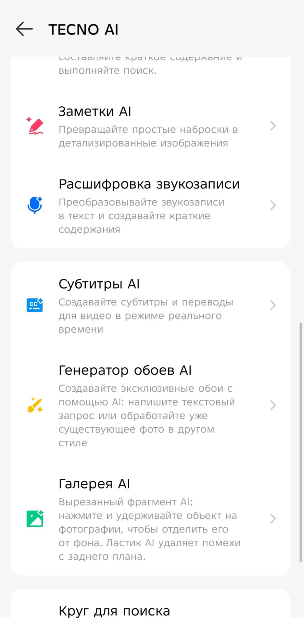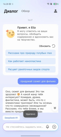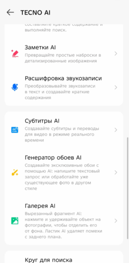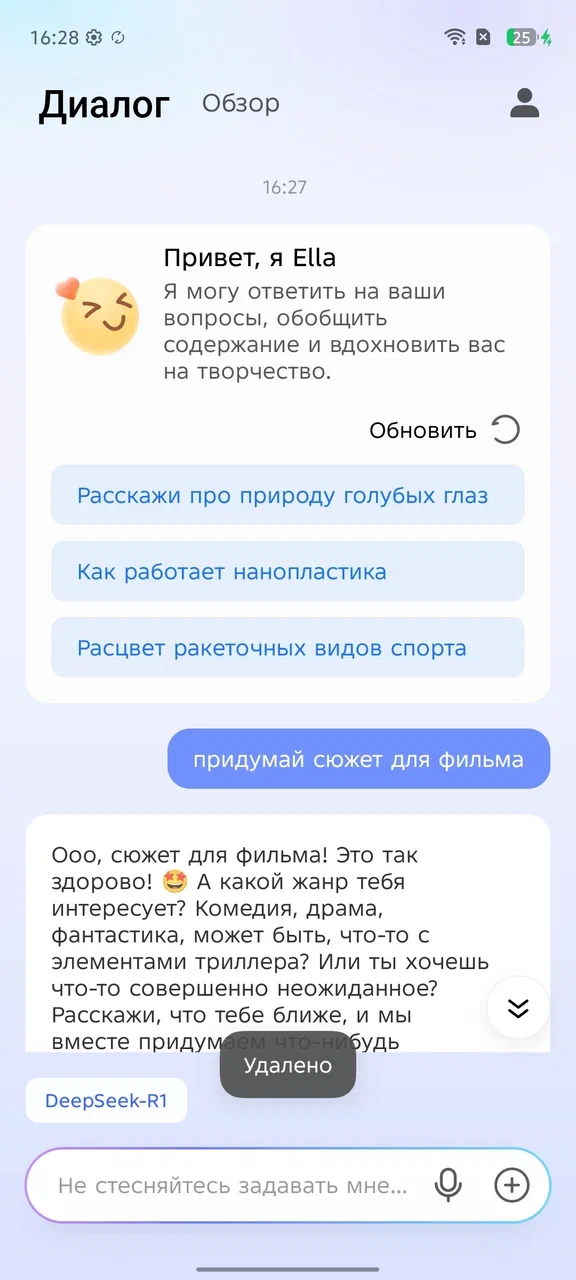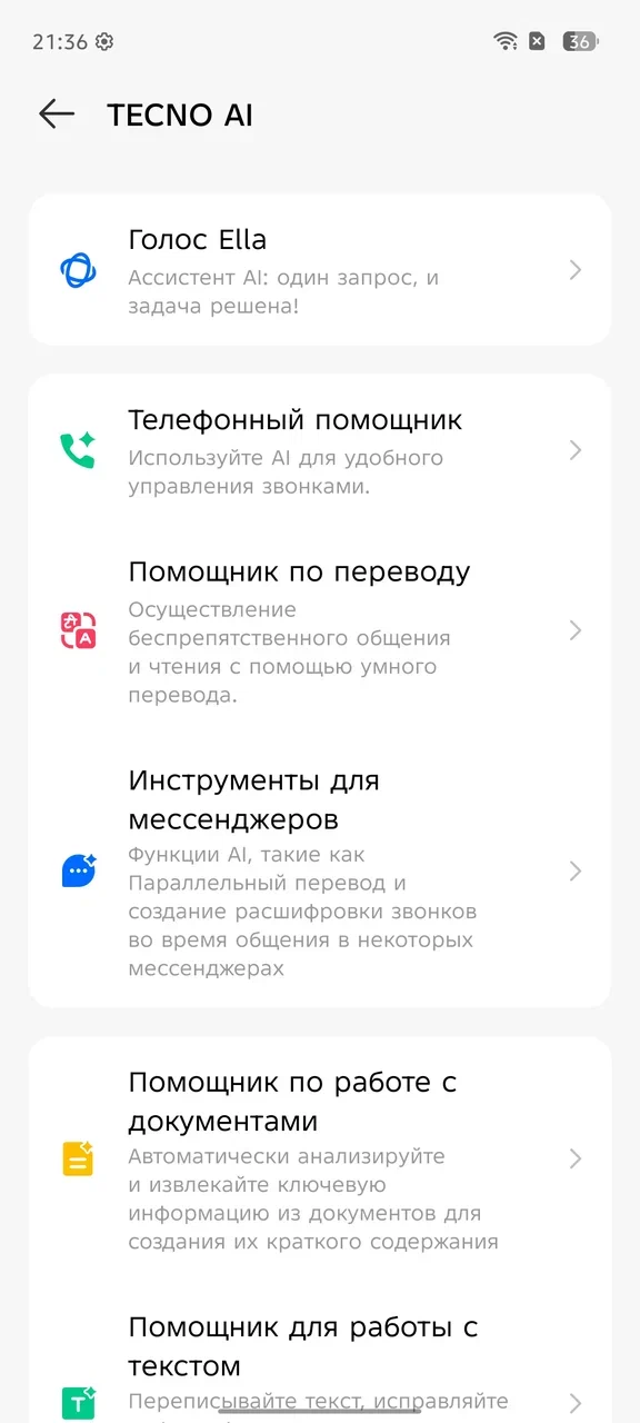 Отдельного упоминания заслуживает Tecno AI. Часть фирменных ИИ-функций встроена прямо в систему и штатные приложения, а часть доступна через голосового помощника Ella, который вызывается удержанием кнопки питания. Внутри самого ассистента можно переключаться между стандартной моделью Tecno AI и DeepSeek. Сделано это прямо в окне общения, без лишних переходов по меню, что в таких вещах всегда идет в плюс.