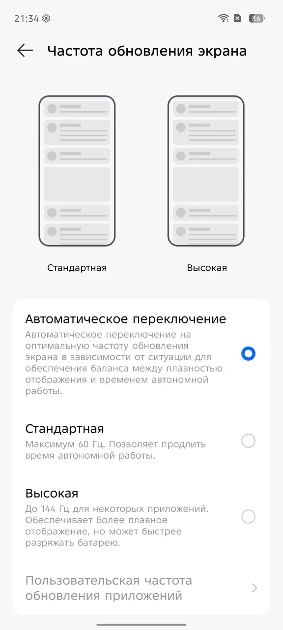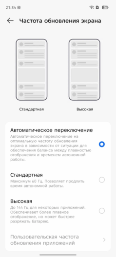 В системе есть набор полезных функций для повседневного использования — можно очищать память, следить за энергопотреблением приложений и настраивать частоту обновления экрана. Последнюю разумнее оставить в автоматическом режиме, чтобы смартфон сам выбирал баланс между плавностью интерфейса и расходом батареи.
