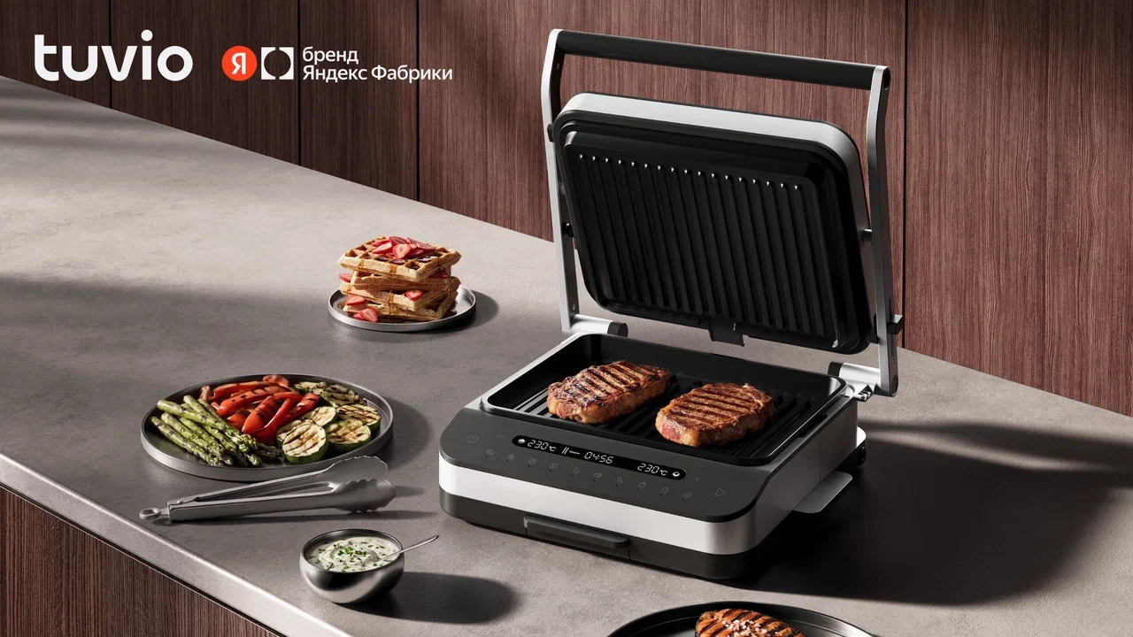 Бренд Tuvio решил выпустить устройство для «умного дома», которое не только жарит мясо, но и общается с пользователем. Новый гриль Tuvio TG06DM 4-в-1 умеет работать с голосовым ассистентом Алисой, подсказывает готовность блюд и даже помогает не передержать мясо. Новинка получила сразу несколько форматов приготовления — классический гриль, вафельницу, барбекю и компактную печь. Такой комбайн явно нацелен на тех, кто хочет максимум функций в одном устройстве.