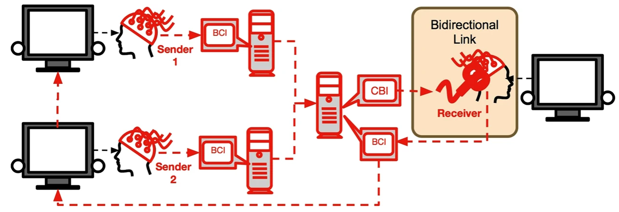 В 2019 году Линьсин Цзян, Андреа Стокко и Раджеш Рао опубликовали описание BrainNet — первой многопользовательской (3 человека) сети «мозг-мозг».